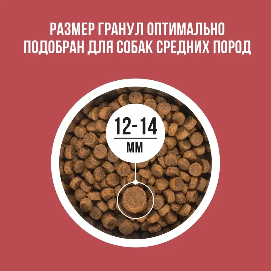 Полнорационный корм BOWL WOW с индейкой, курицей, рисом и свеклой разработан специально для собак средних пород (весом от 10 до 25 кг). В его состав, помимо полного набора белков, жиров, углеводов, витаминов и микроэлементов, введены компоненты для поддержки иммунитета, суставов и заботы о правильном пищеварении вашего питомца. Размер гранул 12–14 мм специально разработан для взрослых собак средних пород.