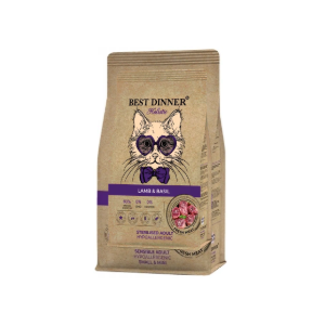 Best Dinner Holistic Hypoallergenic Adult Sterilised Cat Lamb & Basil - Высококачественный низкозерновой рацион для кошек с ягненком и базиликом, который не оставит равнодушной ни одного пушистого гурмана. Свежее мясо ягненка с добавлением индейки обладают высокой вкусовой привлекательностью и не нагружают работу желудочно-кишечного тракта. Ароматный базилик не только повышает вкусовую привлекательность корма но и улучшают работу ЖКТ, а добавленные груша и корень цикория обеспечивают питание и развитие полезной кишечной микрофлоры. Добавленный DL -метионин профилактирует развитие мочекаменной болезни. Гранулы в форме сердечек не оставят равнодушными даже самых привередливых кошек.