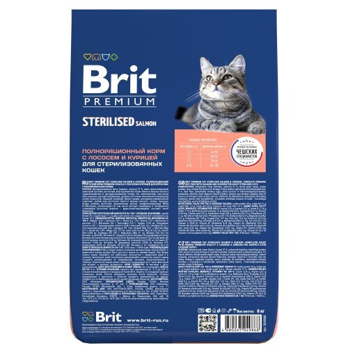 Полнорационный сухой корм премиум-класса с лососем и курицей для взрослых стерилизованных кошек, 8 кг