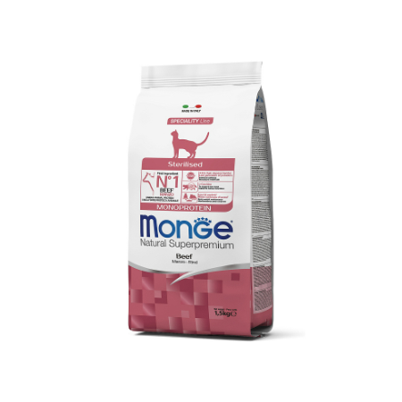 Monge (Монж) Cat Speciality Line Monoprotein сухой корм из мяса говядины для стерилизованных кошек и кастрированных котов 1,5 кг.