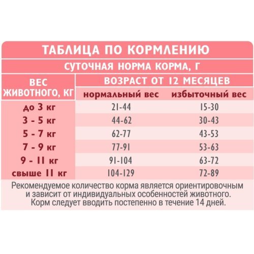 Следуйте рекомендациям по ежедневному питанию, представленным в таблице кормления.