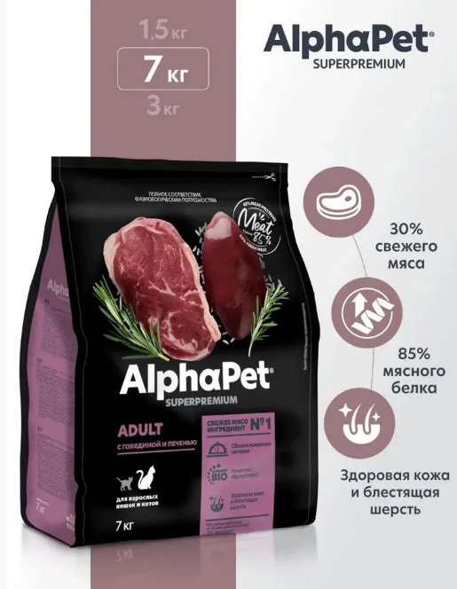 Сухой корм для взрослых кошек AlphaPet Superpremium (АльфаПет) 7кг с говядиной и печенью