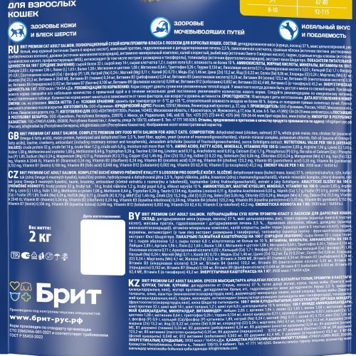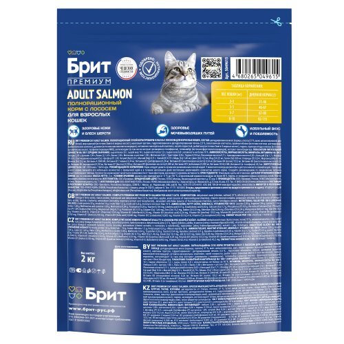 Полнорационный сухой корм премиум-класса с лососем для взрослых кошек, 2 кг