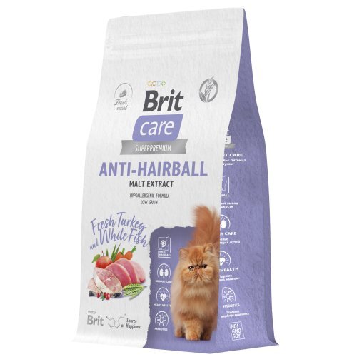 Естественный процесс вылизывания может приводить к образованию комочков шерсти в желудке, что нередко вызывает рвоту и расстройства пищеварения. Корм Brit Care предлагает ряд преимуществ, которые помогают справиться с этой проблемой и поддерживать общее здоровье питомца:
