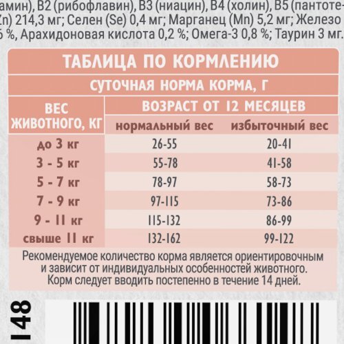 Корм следует давать сухим или увлажненным теплой водой. Суточная норма может варьироваться в зависимости от индивидуальных потребностей животного и таких факторов как возраст и уровень активности. У питомца всегда должен быть доступ к свежей воде.