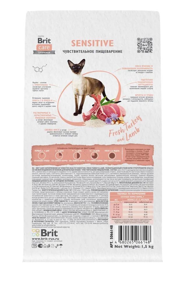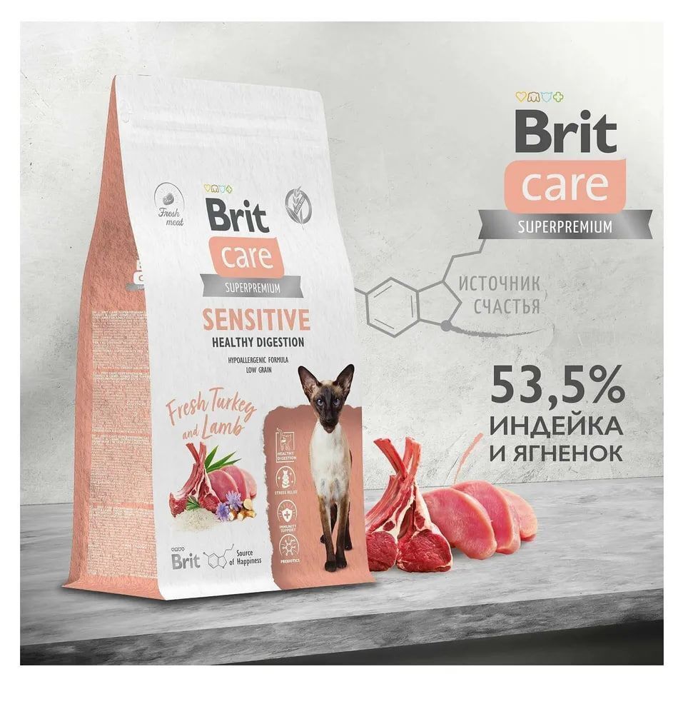 Сухой корм Brit Care суперпремиум-класса с индейкой и ягненком предназначен для кошек с чувствительным пищеварением. Формула корма разработана для поддержания здоровья пищеварительной системы и нормализации работы кишечника, обеспечивая легкое усвоение питательных веществ.