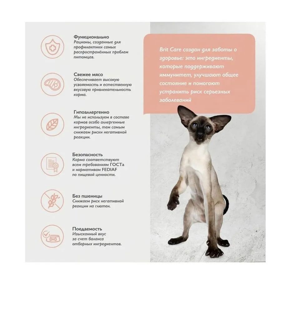 Этот корм также содержит растворимые и нерастворимые пищевые волокна, что способствует поддержанию здоровой микрофлоры кишечника и нормализации стула. Brit Care — это сбалансированный рацион для кошек с чувствительным здоровьем.