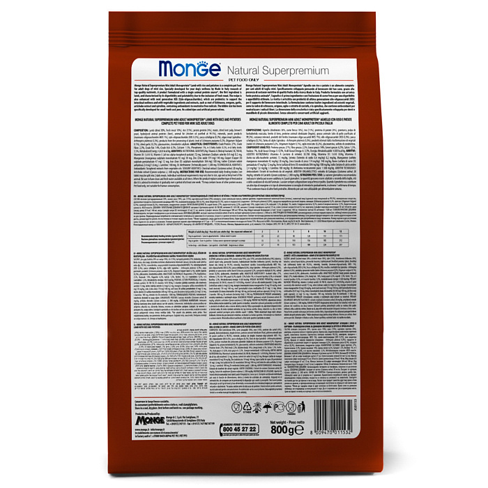 Monge (Монж) Dog Speciality Line Monoprotein Mini сухой корм из мяса ягнёнка с рисом для взрослых собак мелких пород 800 г.