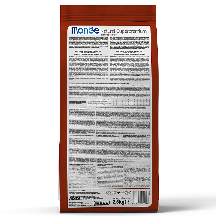 Monge (Монж) Dog Speciality Line Extra Small сухой корм из мяса ягнёнка для взрослых собак миниатюрных пород 2,5 кг.