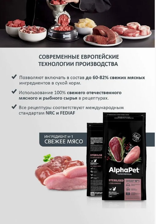 Это полноценное холистическое питание, которое заботится о здоровье вашего пушистого друга на клеточном уровне. Разработанный специально для стерилизованных кошек, он помогает избегать набора лишнего веса, поддерживает активность и обеспечивает организм всеми необходимыми витаминами и минералами. Высокое качество ингредиентов и сбалансированный состав делают AlphaPet лучшим выбором для заботливых владельцев, ценящих здоровье и благополучие своих питомцев.