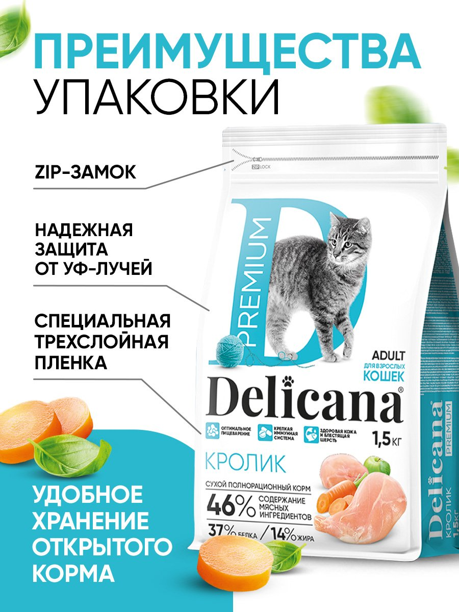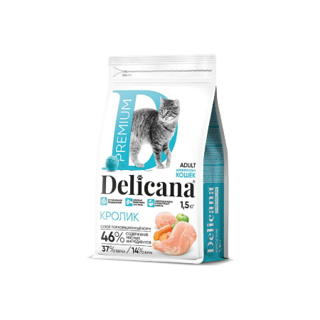 Delicana Сухой полнорационный корм для взрослых кошек с кроликом.