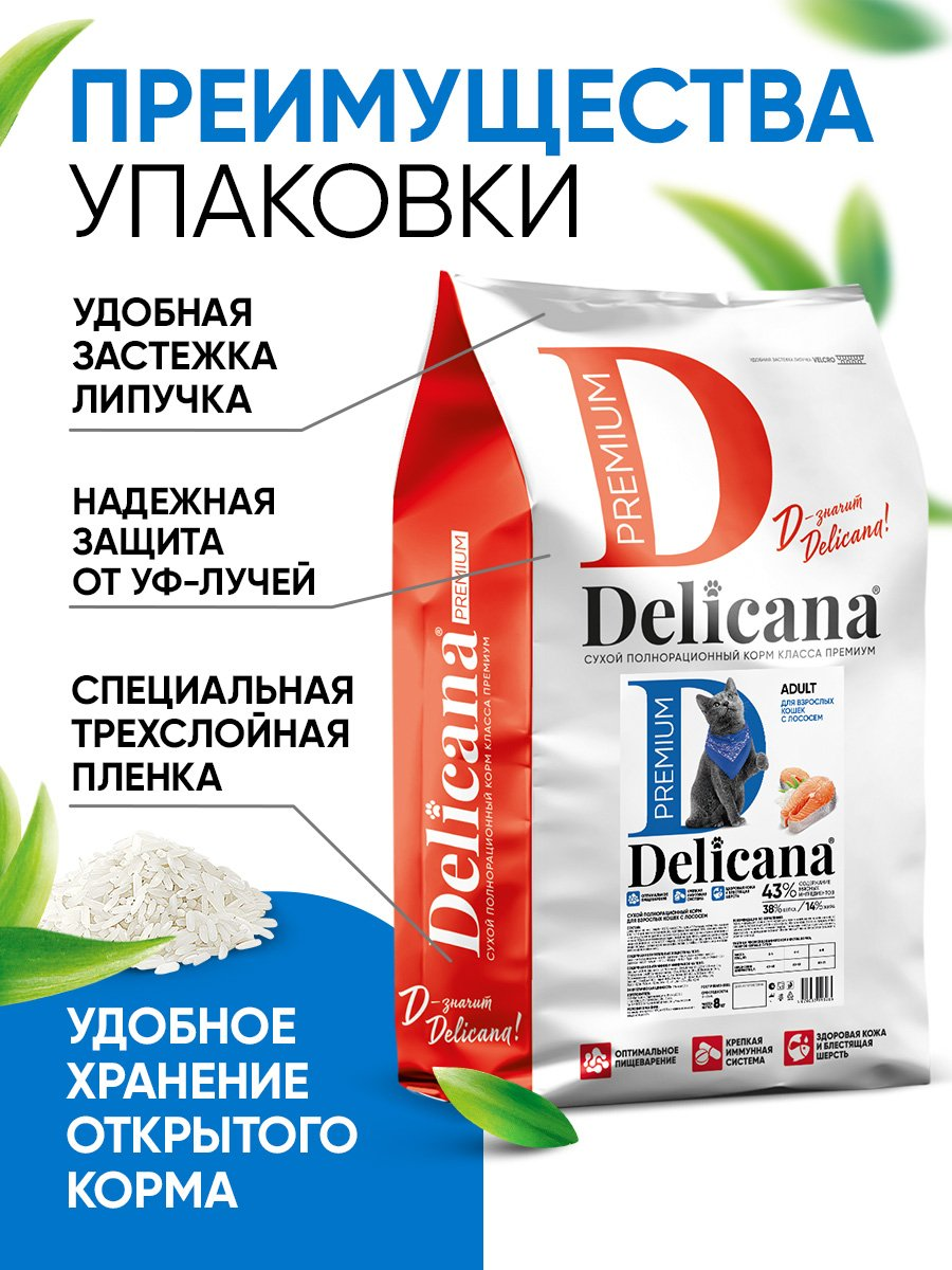 Delicana сухой полнорационный корм для взрослых кошек с лососем.