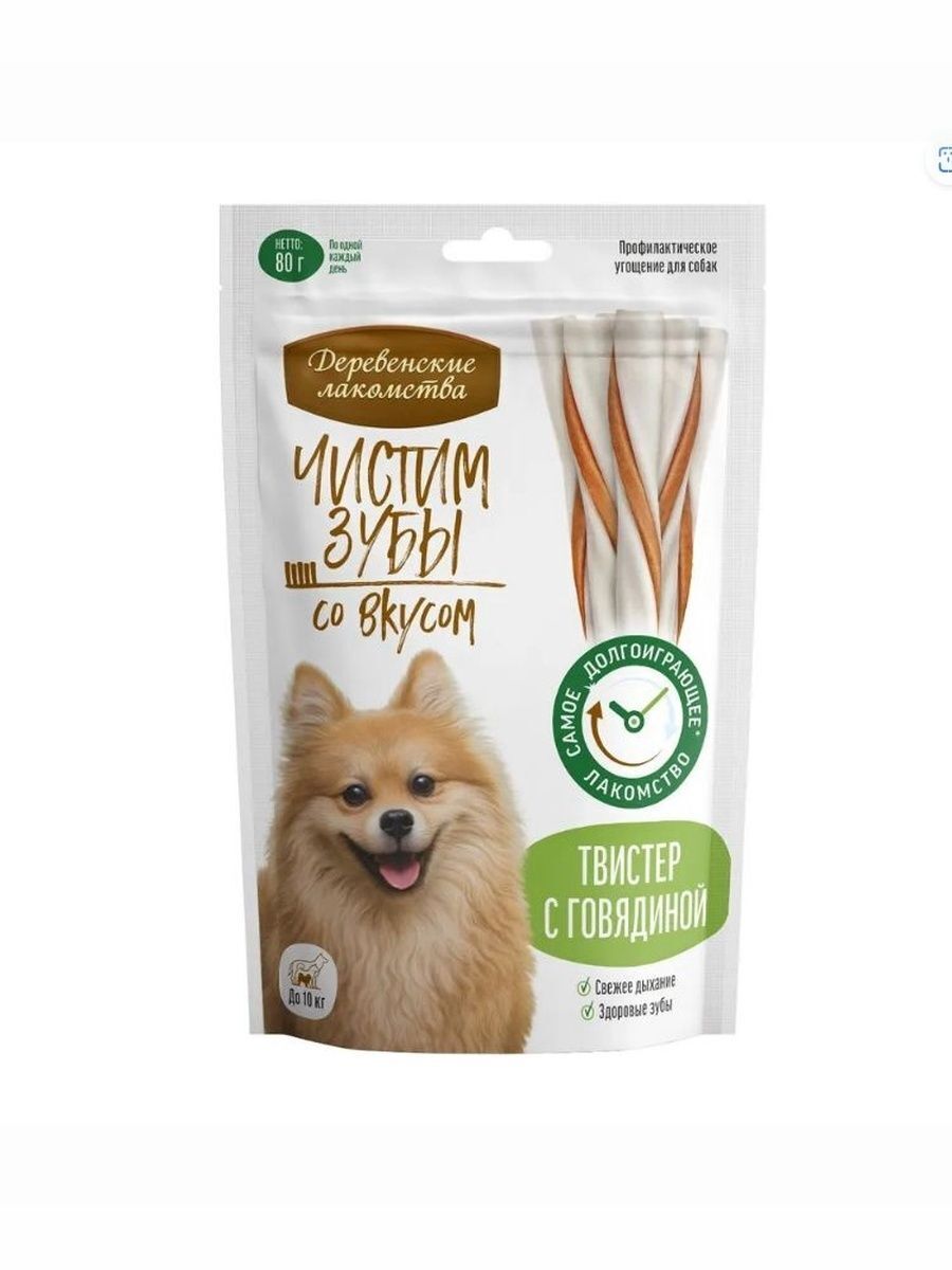 Твистер Чистим зубы для собак мелких пород с говядиной – идеальный жевательный снек для чистки зубов! Ваш питомец заслуживает лучшего! Представляем жевательный снек для чистки зубов для собак мелких пород – Твистер с говядиной. Эти вкусные косточки для зубов собак не только порадуют вашего четвероногого друга, но и помогут поддерживать гигиену полости рта.