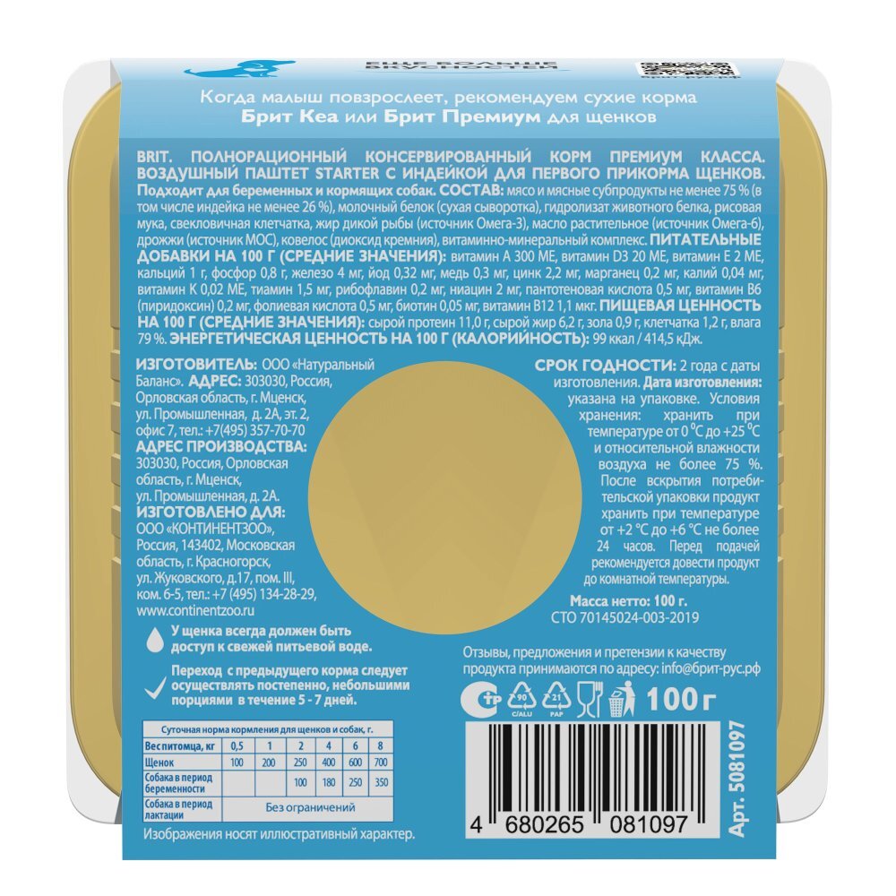 Нежный воздушный паштет BRIT STARTER создан специально для малышей и является идеальным вариантом для первого прикорма и приучения щенков к взрослой пище.