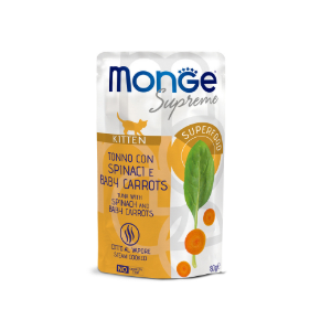 Влажный корм Monge Supreme kitten для котят из тунца со шпинатом и мини-моркови, консервы 80 г