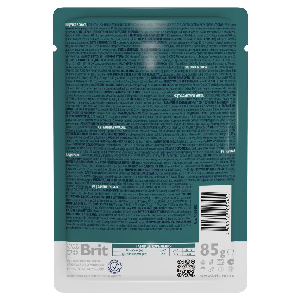 Нежные кусочки мяса в ароматном соусе — идеальное сочетание для полноценного и сбалансированного рациона. Паучи Brit Premium однозначно заинтересуют вашу собаку и станут для нее любимым блюдом.