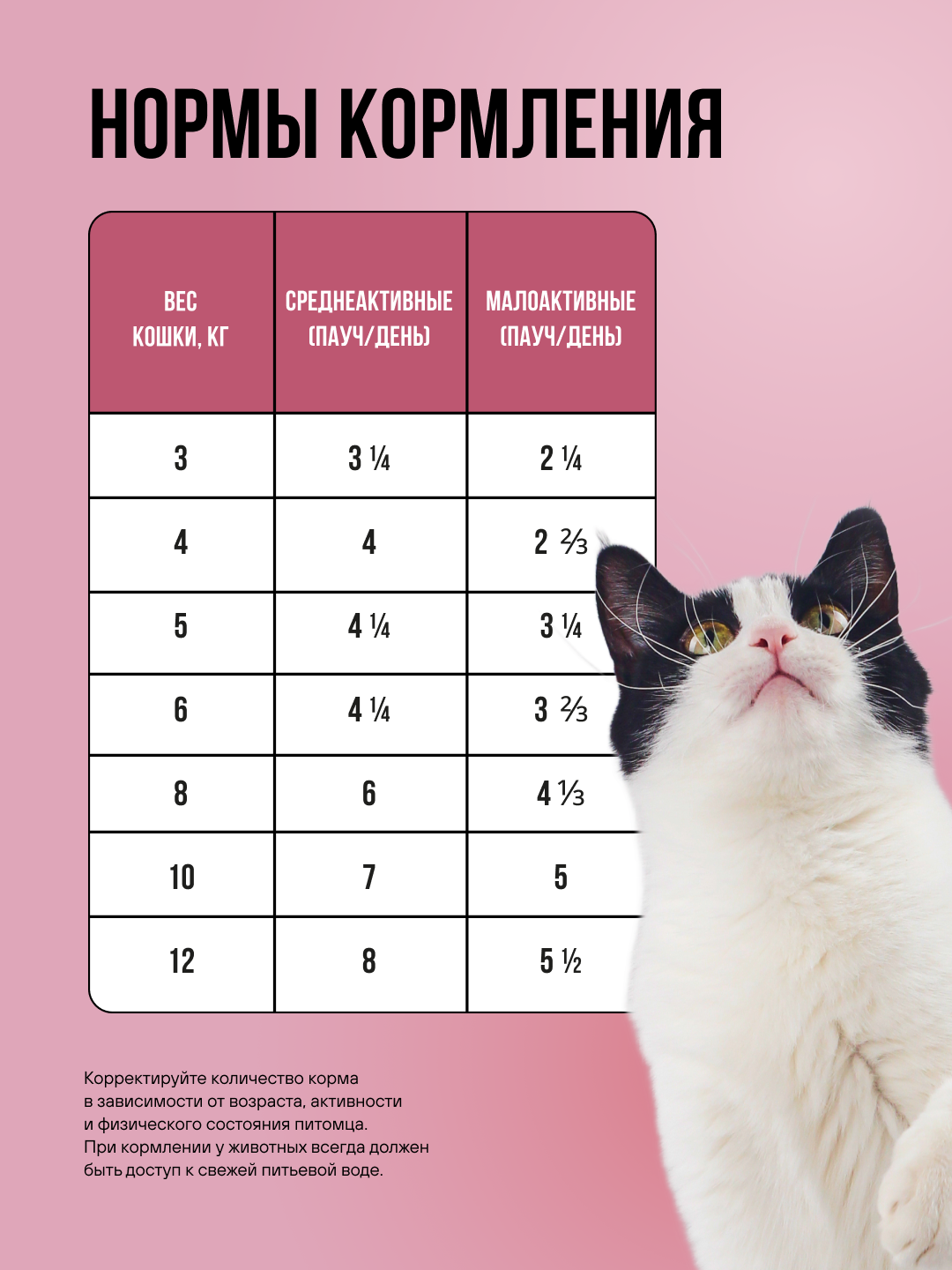 Корректируйте количество корма в зависимости от возраста, активности и физического состояния питомца.