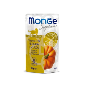 Влажный корм Monge Supreme sterilized cat тунец с киноа и тыквой 80 г. Дополнительный консервированный корм для стерилизованных кошек.