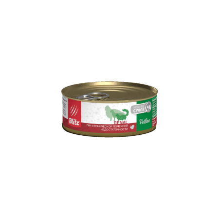Хроническая почечная недостаточность — серьёзное заболевание у кошек. Поддерживать здоровье питомцев в данном случае возможно, только совмещая традиционные лекарственные средства с тщательной корректировкой питания. Влажный корм Blitz Cat Renal — специальный рацион ветеринарной линейки Vetline. Он не только насыщает кошек, но и ослабляет нагрузку на почечные нефроны. Это происходит за счёт уменьшения доли животных протеинов и выборочного сокращения минералов, в частности фосфора и натрия.