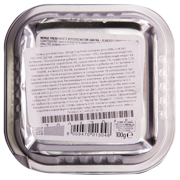 Monge (Монж) Dog Fresh полнорационный влажный корм с мясом утки для взрослых собак всех пород 100 г.