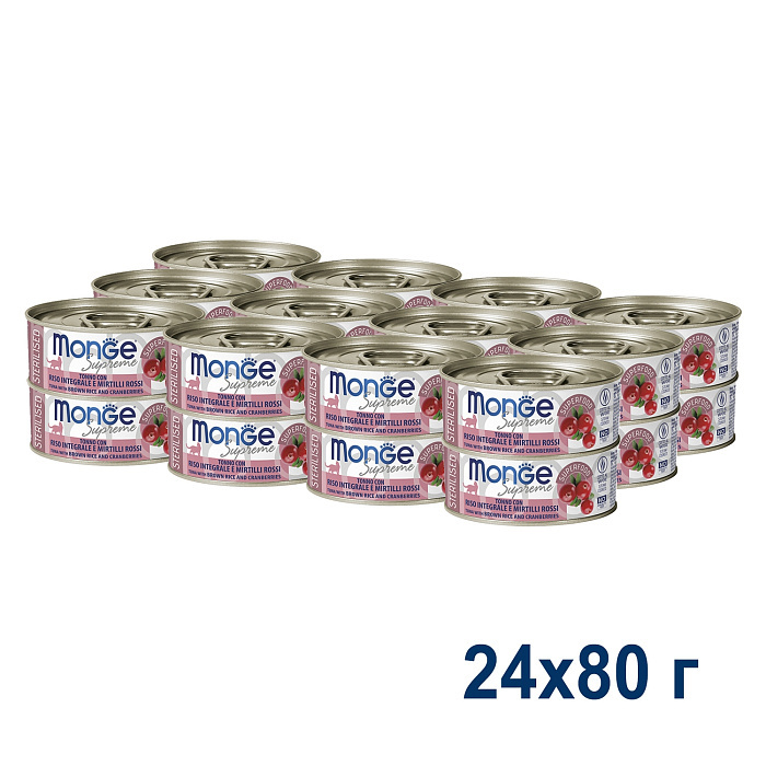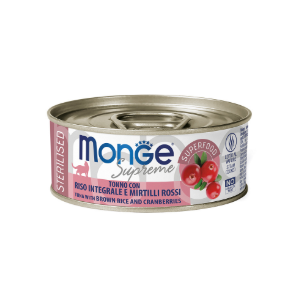 Влажный корм Monge Supreme Sterilised для стерилизованных кошек из тунца с бурым рисом и клюквой , консервы 80 г
