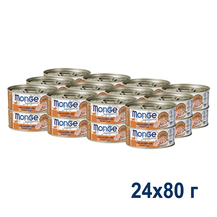 Влажный корм Monge Supreme Sterilised для стерилизованных кошек из тунца с крабом , консервы 80 г