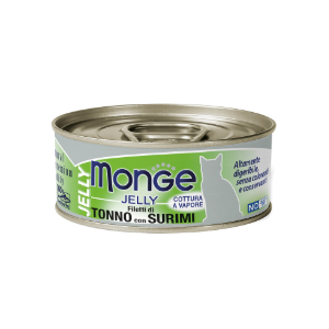 Влажный корм Monge jelly Adult cat для взрослых кошек с желтоперым тунцом и сурими, консервы 80 г.