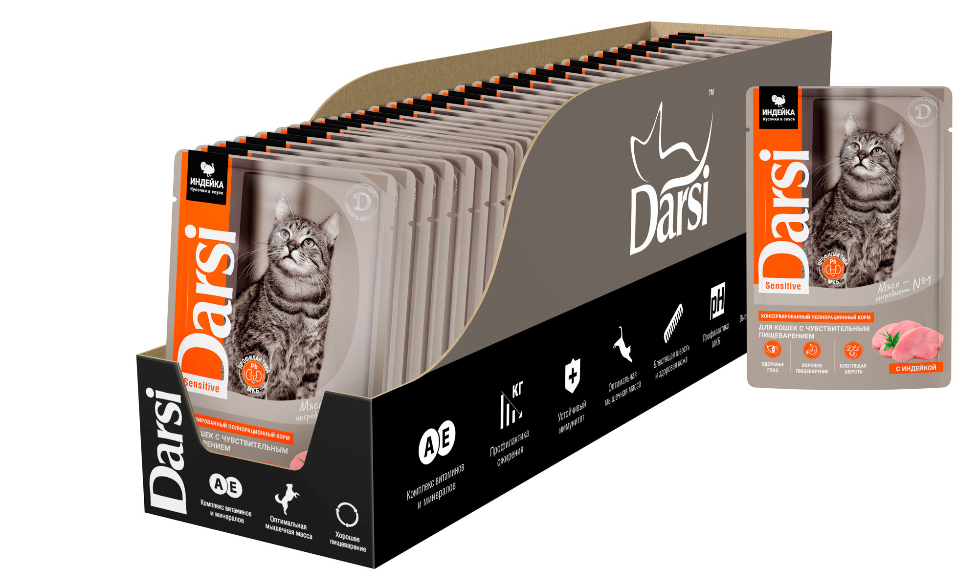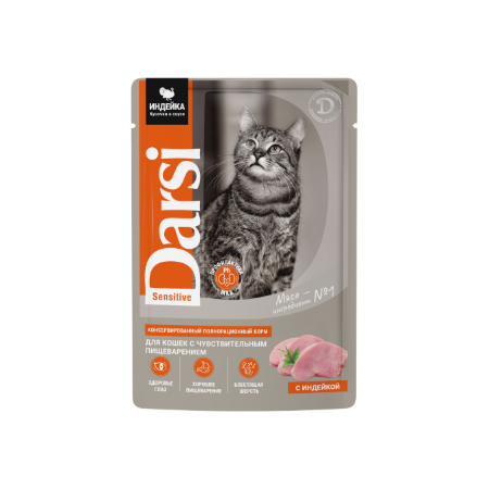 Выбирайте влажный корм darsi с индейкой для кошек с чувствительным пищеварением — качество и забота, проверенные временем!