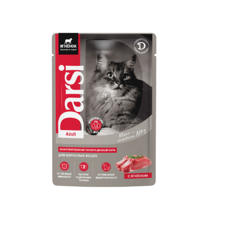 Влажный корм Darsi с ягнёнком — идеальный выбор для взрослых кошек