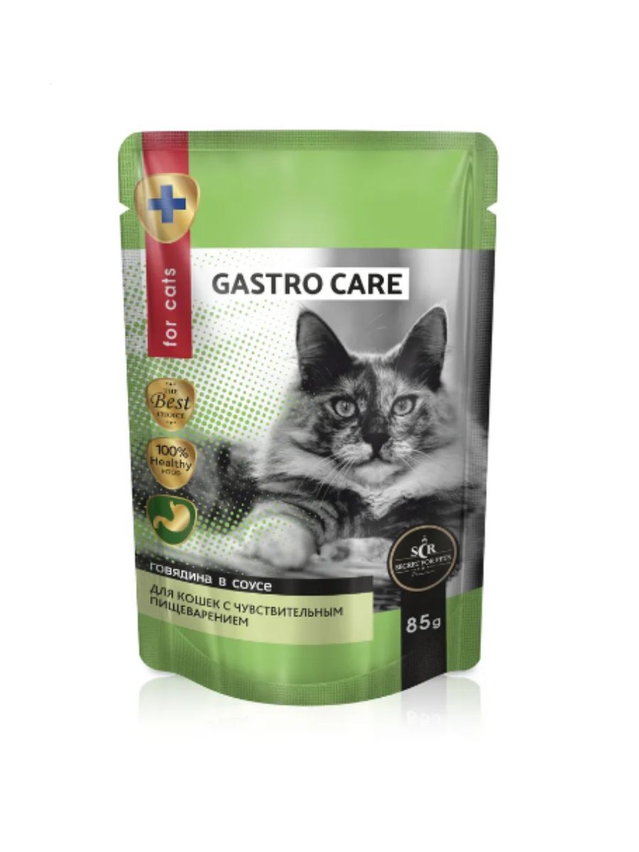 Секрет (Secret For Pets) Gastro care 0,085кг кусочки с говядиной в соусе для чувствительного пищеварения пауч для кошек. Корм консервированный полнорационный для взрослых кошек с чувствительным пищеварением: кусочки с говядиной в соусе. Клетчатка способствует здоровому пищеварению, а инулин, входящий в состав корма, помогает восстановить естественную микрофлору кишечника. Рекомендации по кормлению: Вес животного: менее 2 кг - 1-2 пауча, 2-3 кг - 2,5- 3 пауча, 3-4 кг - 3,5-4 пауча, 4-6 кг - 5 паучей. Состав: мясо и субпродукты 40% (в том числе говядина не менее 8%), рис, витамины и минеральные вещества, растительное масло, свекловичная клетчатка, инулин, экстракт Юкки Шидигера, таурин. Питательная ценность в 100 г продукта: белок - 9,2%, жир - 4,2%, влага - 81%, зола - 1,6%, клетчатка - 0,4%, витамин А - 1500 МЕ, витамин Д, - 16 МЕ, витамин Е - 1,2 МЕ, кальций -0,19 г. фосфор- 0,16 г. Энергетическая ценность на 100 гпродукта: 87 ккал/363 кДж. В комплекте 24 Упаковок