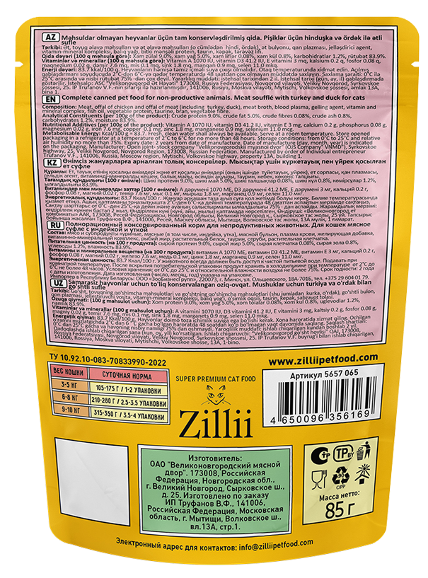 Ищете вкусный и полезный рацион для вашей кошки? Представляем Zilli корм для кошек влажный в формате суфле с индейкой и уткой — идеальное решение для тех, кто ценит качество и заботу о питомце.