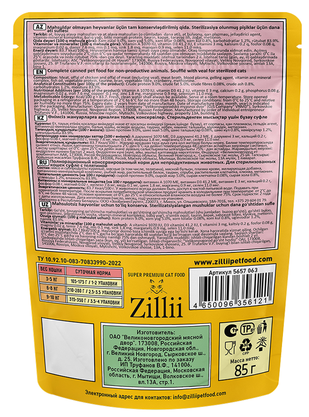 Zilli влажный корм суфле с кроликом и курицей — забота о стерилизованных кошках