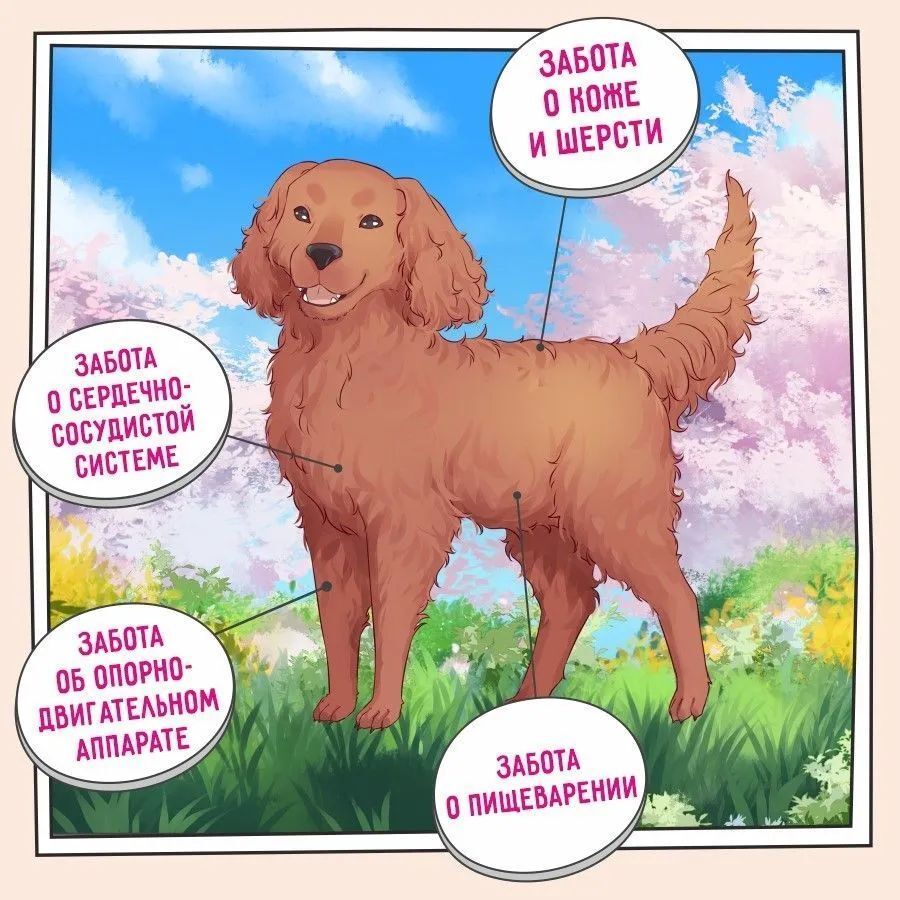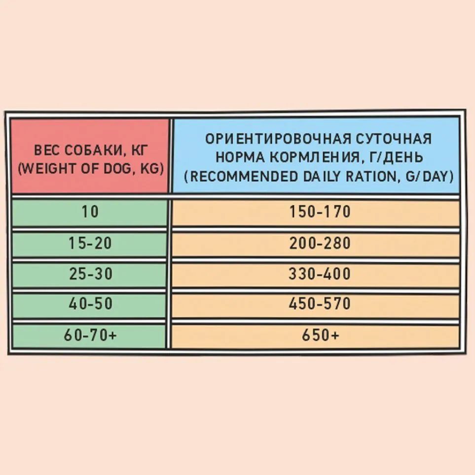 - Гранулы созданы с учётом физиологических особенностей собак разных пород и размеров.